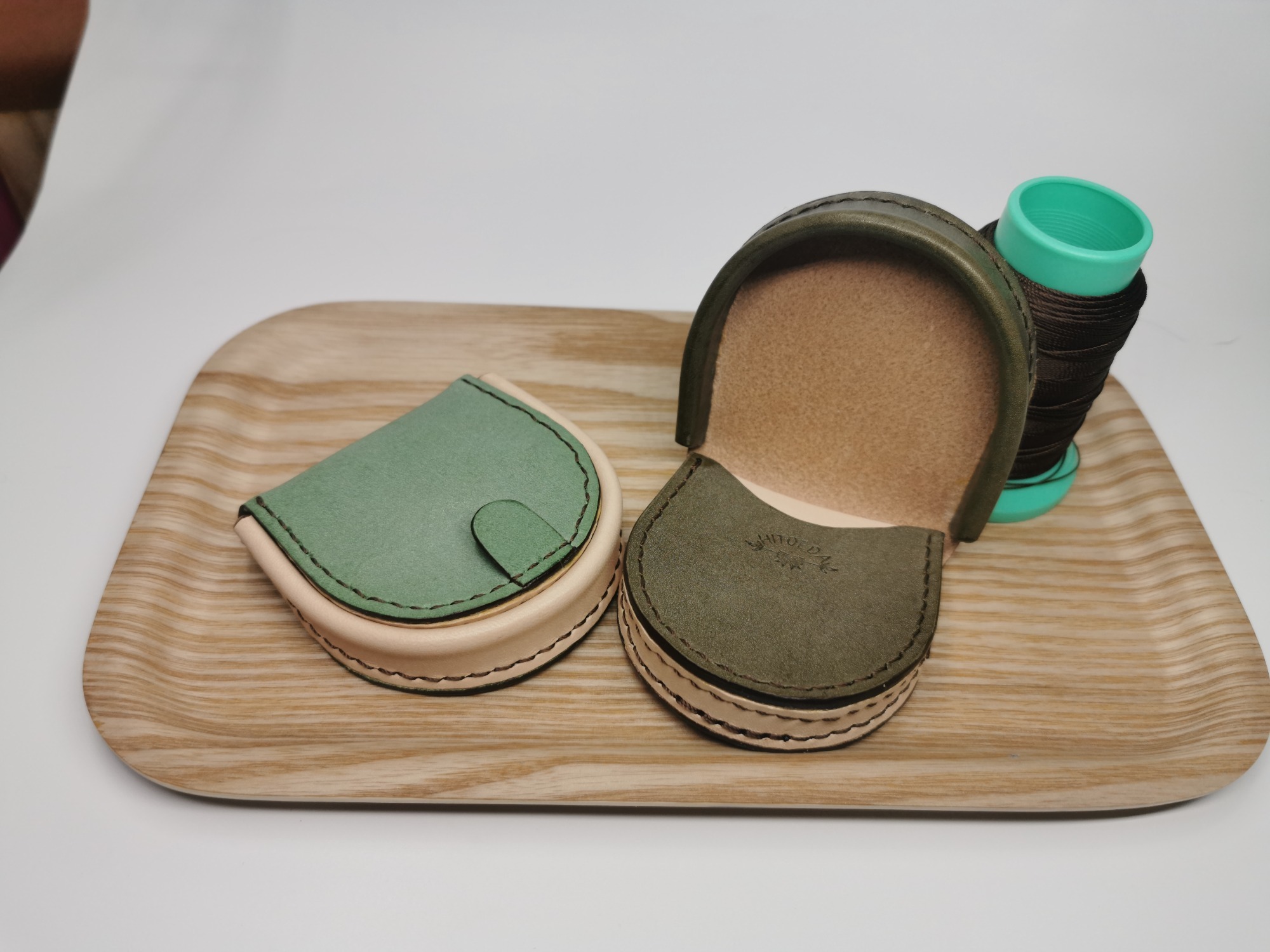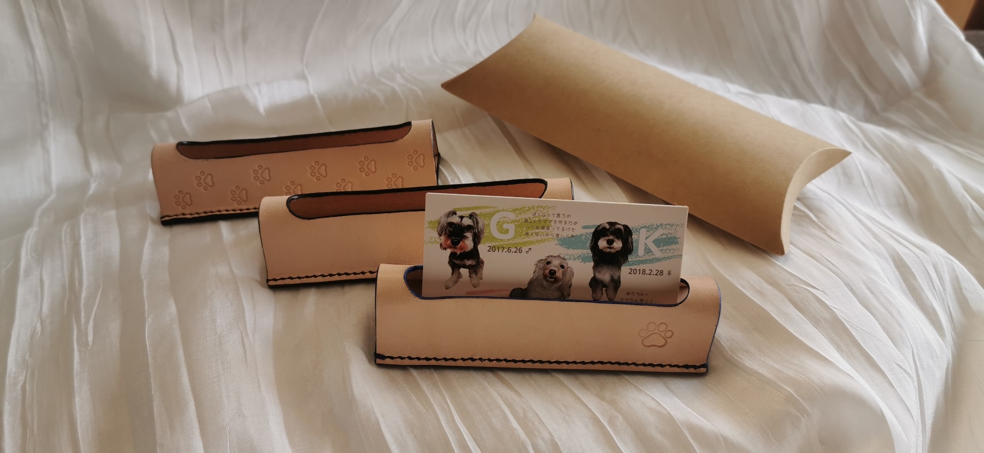 打ち合わせは職場でほぼ毎日お会いするので随時対面で革選びから大きさ、形手触り迄体感したうえでお選びいただきました