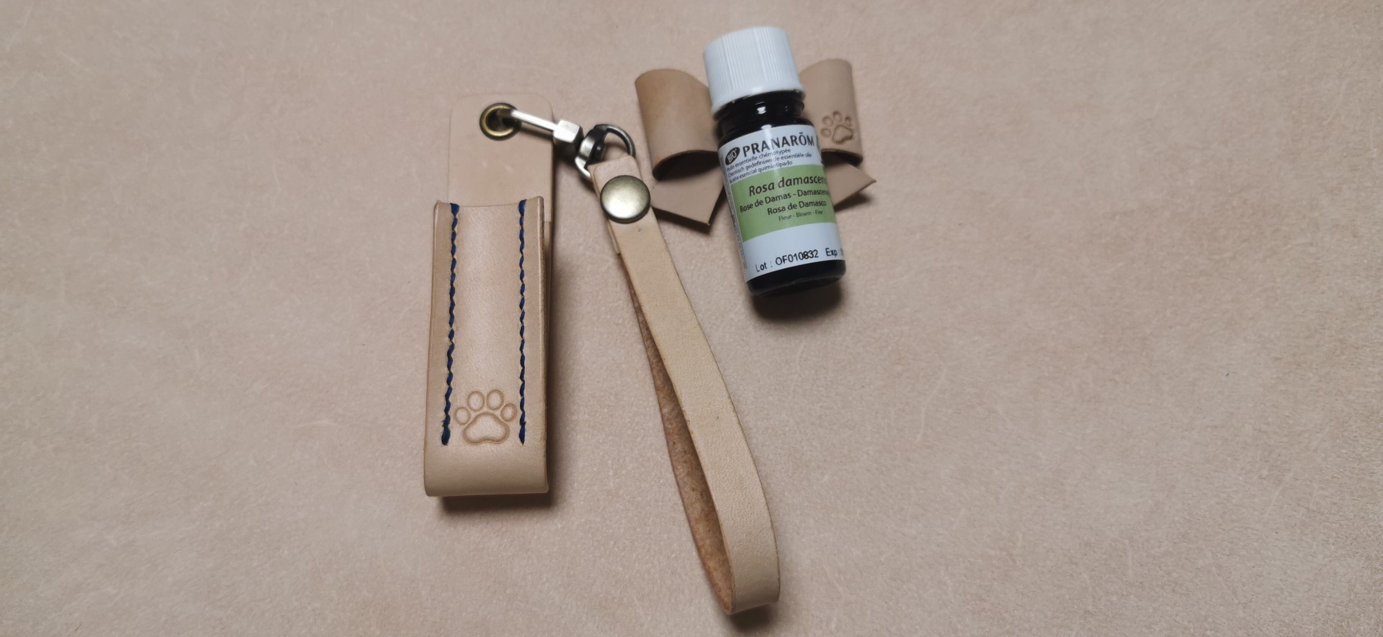 革には特別な仕掛けを施すことで、精油を直接塗り込み香りを楽しめます
